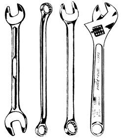 The open-end of any wrench is the easiest part of the wrench to use but not very effective for hard work because the wrench only grasps the fastener on two (2) sides and can easily slip, damaging the fastener and operator. The box-end of a wrench is far stronger because it holds the fastener on all sides. An adjustable wrench is similar to the open-end of a wrench but with one of the jaws being adjustable.
