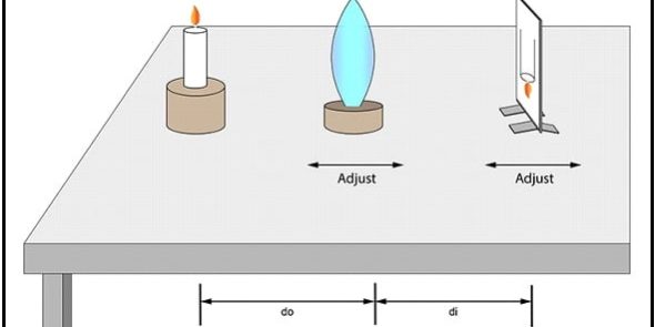 - Adjust the position of the candle and screen to produce a focal length of 10cm and then adjust the position of the screen until a clear image is formed.