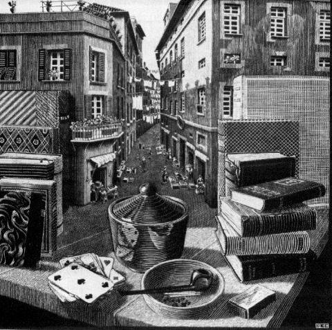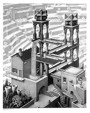 Physical objects have a spatial relation which is necessary is considered the “logic” of space; when these are disrupted, they become visual paradoxes or optical illusions. Maurits understood the relationship between space geometry and space logic determining one another. He used to experiment with light and apply it to the logic of space, and when using concave and convex objects, he would shadow.
