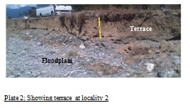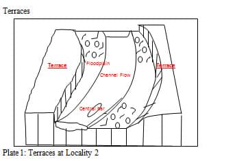 At locality 2 as well as at locality 3, terraces have been formed. These terraces are seen formed at the edges of the floodplains along the Morant River, creating the shape and size of the river channel. According to figure 2, the channel shape of the Morant River. At both localities, there is a set of paired terraces that are at the same elevation, as seen in plate 3, for locality 2.