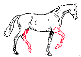 The trot is powered by the hind end of the horse and is much more springy and elastic than the walk because the horse’s hindquarters contain most of the muscle in the horse (in fact, a horse has no muscle below its front knees, only tendons and ligaments). The hindquarters push a horse forward at the trot, allowing for more movement in the x-direction.