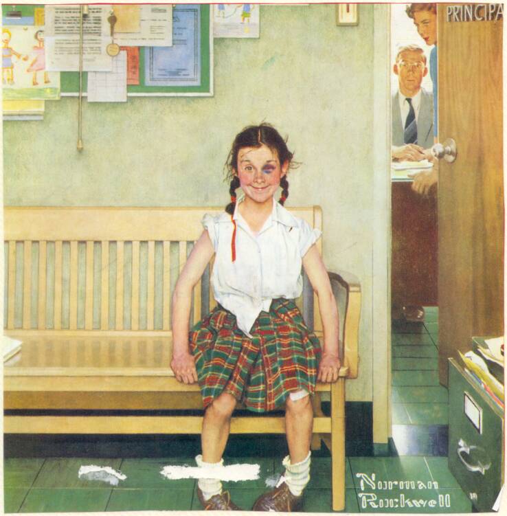 Norman Rockwell was considered a reserved man, not given to grand gestures. He impressed himself on America’s collective imagination by his stubborn attachment to the old values. His ability to relate these values to the events and circumstances of a rapidly changing world made him a special person in ways both hero and friend to millions of his fellow citizens. His ability to get the point across in one picture, and his style for painstaking detail made him a favorite of the advertising industry. Rockwell helped preserve American myths, but, more than that, he recreated them and made them appealing for new generations. His function was to reassure people, to remind them of old values in times of rapid change.